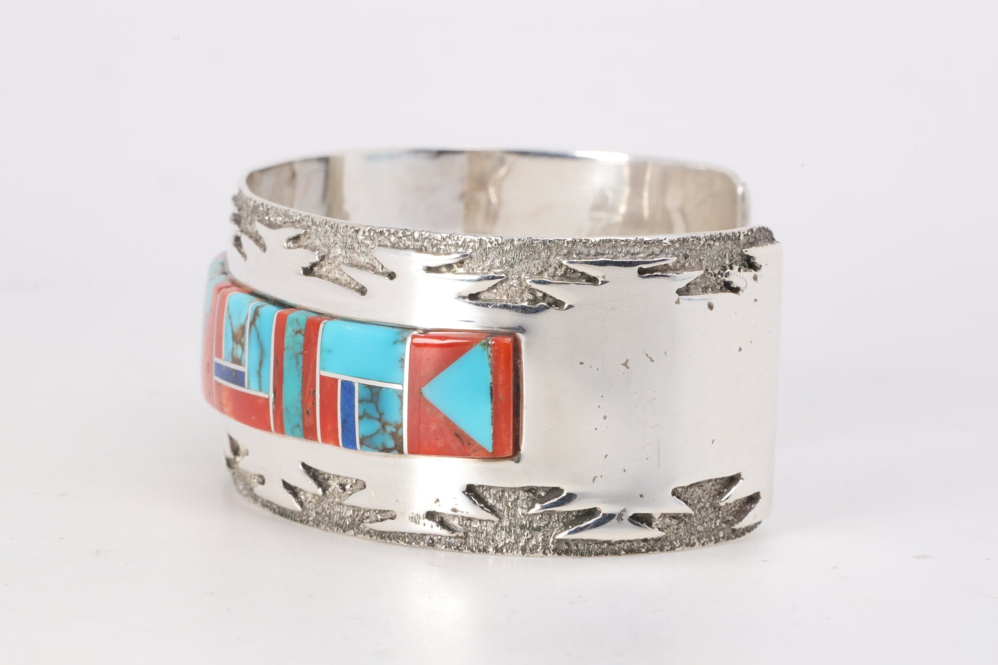 6.5'' 925 Silver Multi Stone Inlay Native American Cuff Bracelet (42.10g.)