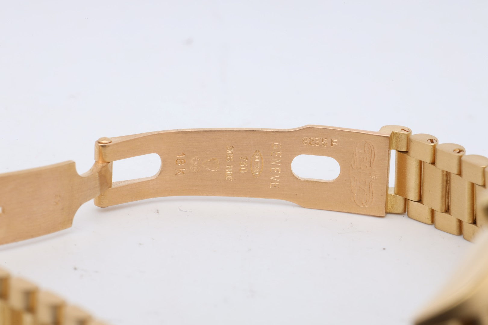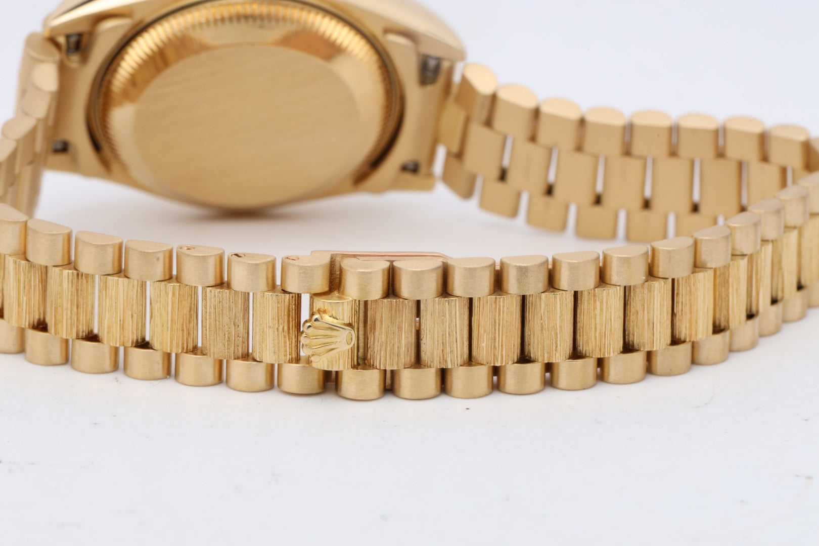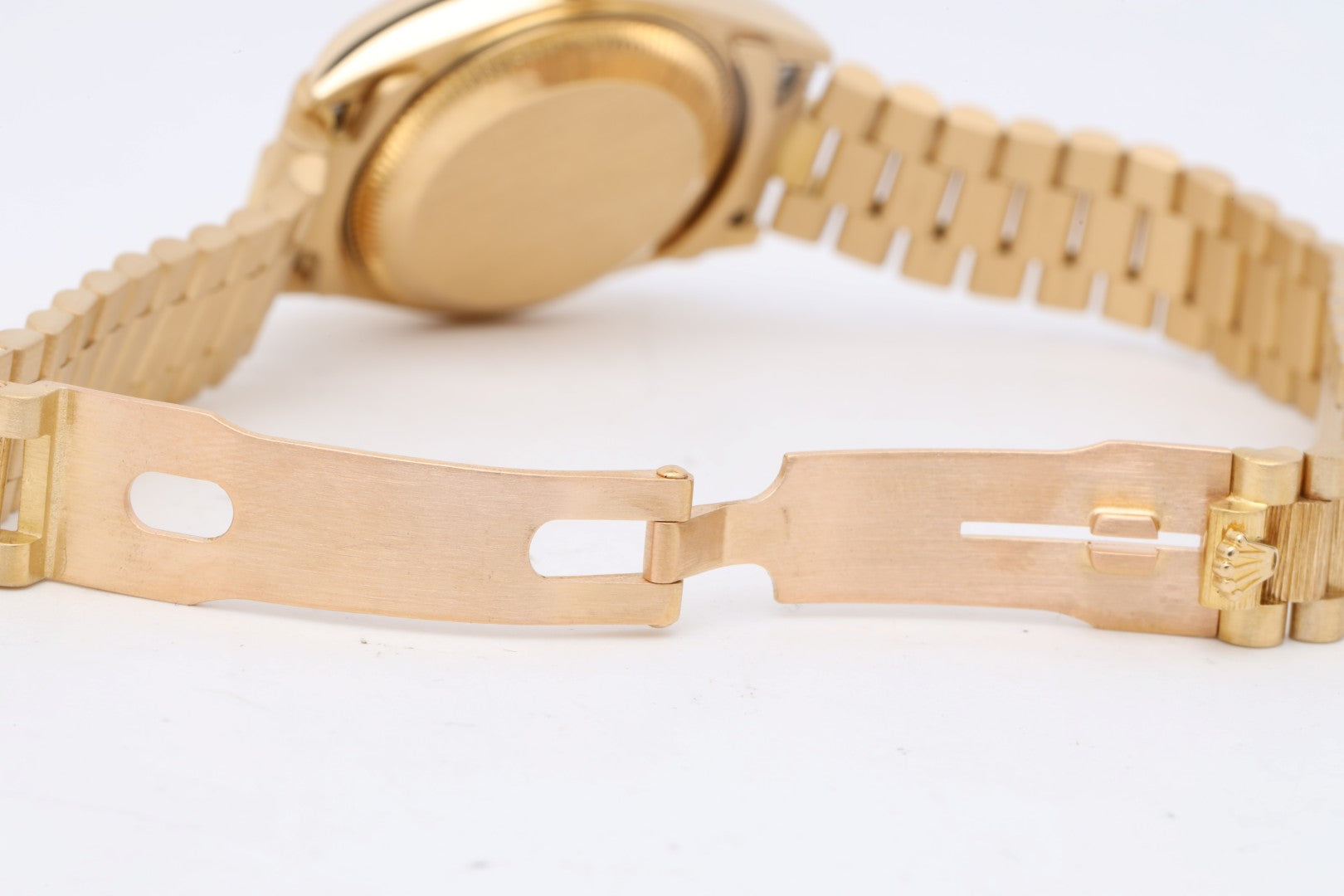 - Bracelet: President, 18k Yellow Gold, 6.5" Max Wrist Size, 6 Screws, Hidden Fold Clasp