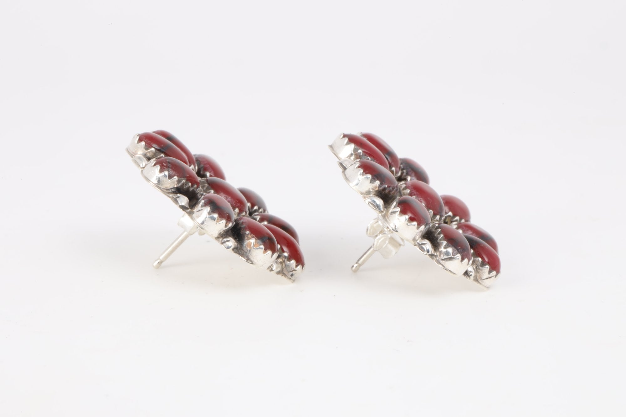 Terry Williams 925 Silver Blood Jasper Cluster Navajo Native Earrings (7.60g.)