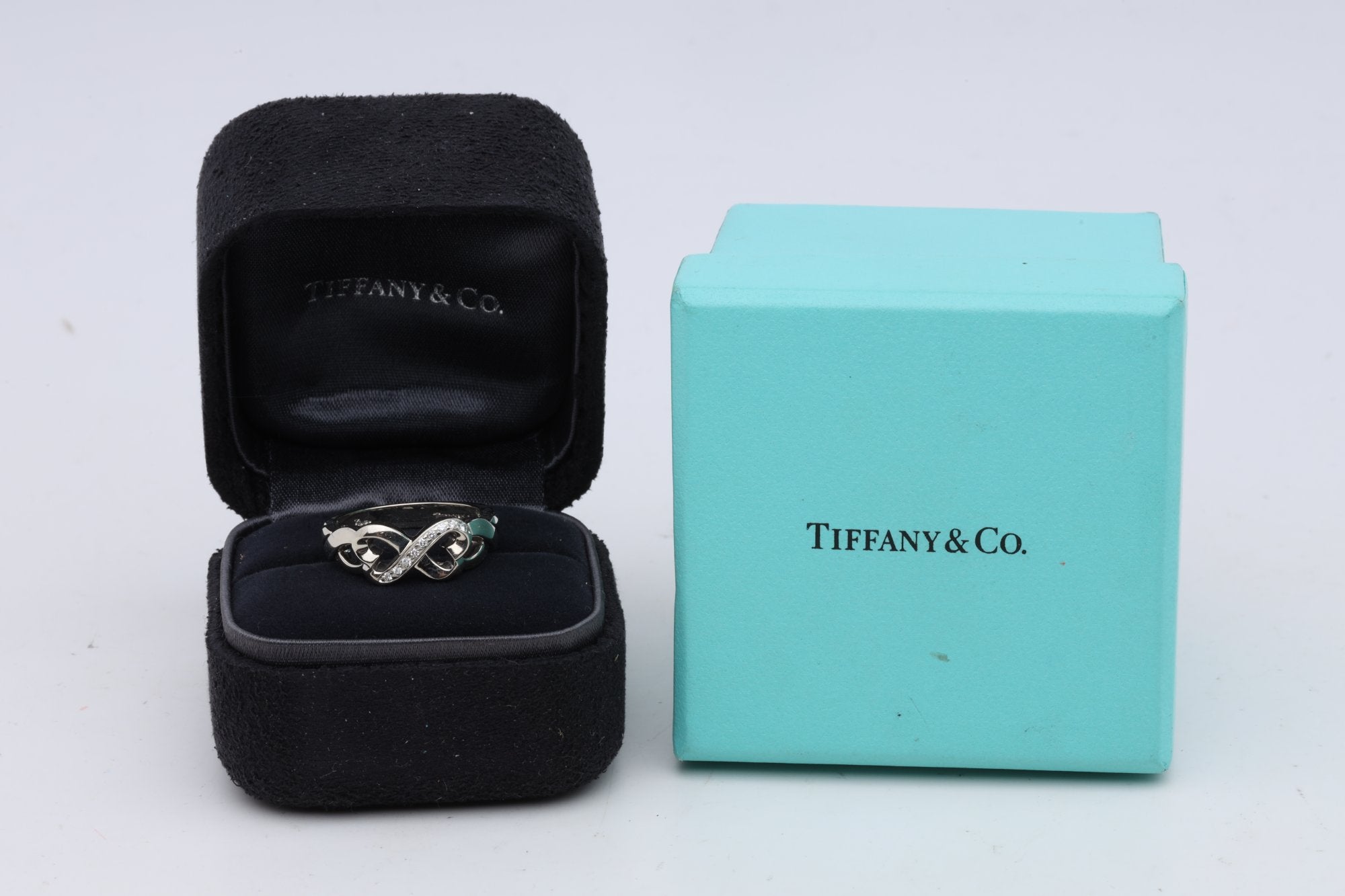 Tiffany & Co. 18k White Gold Diamond Double Loving Heart Ring Size 7.5 (6.45g.)