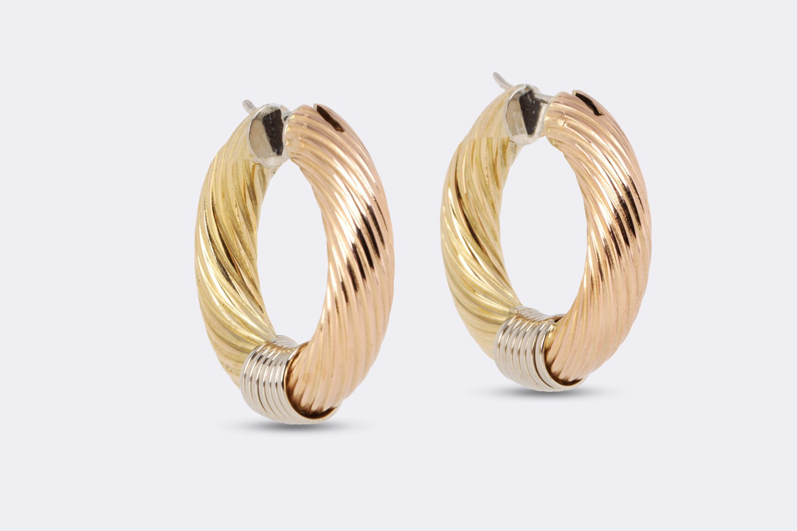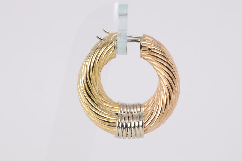 18k Tri-Tone Gold Twisted Hoop Earrings (11.16g.)