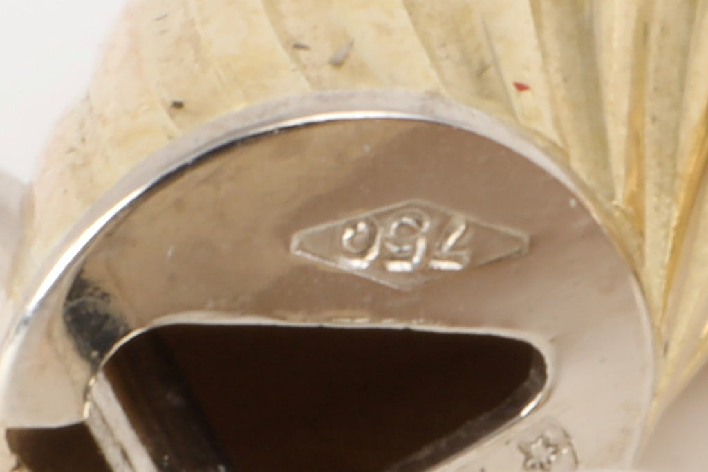 These 18k tri-tone gold twisted hoop earrings blend yellow, rose, and white gold in a graceful, intertwined design. The polished finish enhances their movement and shine, making them a versatile accessory for both casual and formal occasions. Hinged hoop closures ensure a secure and comfortable fit.