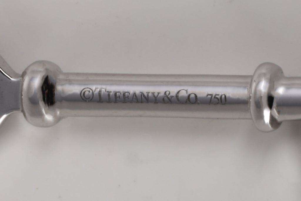 This elegant Tiffany & Co. diamond key pendant is crafted in luxurious 18k white gold and accented with 33 round brilliant diamonds totaling 0.08 carats. With a design that symbolizes hope and opportunity, the pendant showcases Tiffany’s signature craftsmanship and timeless style. Measuring 37.5mm in length, it’s a versatile piece that can be worn as a statement pendant or layered for a modern, fashionable look. Original retail: $1,600.