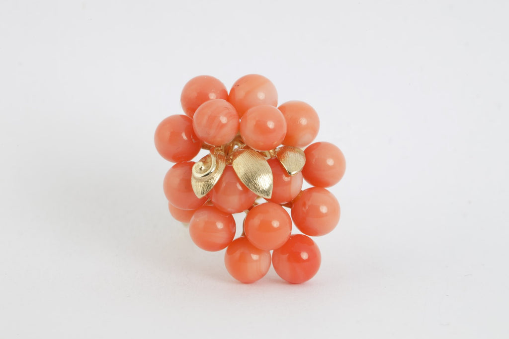 14k Yellow Gold Orange Coral Berry Cluster Leaf Ring Size 5.5 (8.16g.)