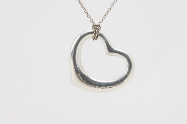 18" TIffany & Co. Elsa Peretti 925 Silver Open Heart Pendant Necklace (5.54g.)