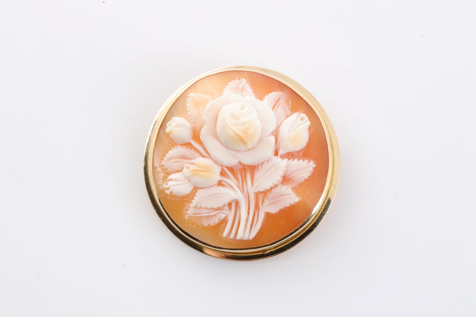 18k Yellow Gold Cameo Rose Brooch (7.33g.)
